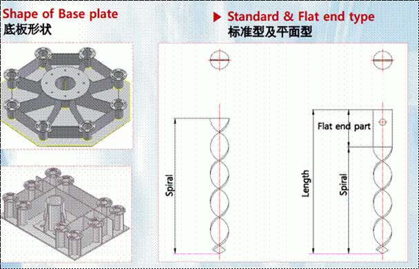 打入地下的螺旋桩受到垂直方向力时,发生沿上下方向抵抗地耐力和抵抗耐压的力,并增加 支撑力。螺旋桩不仅支撑压载荷,还具有同等的拔出力。螺旋桩两侧有效的理由就是因为具有特殊的形式